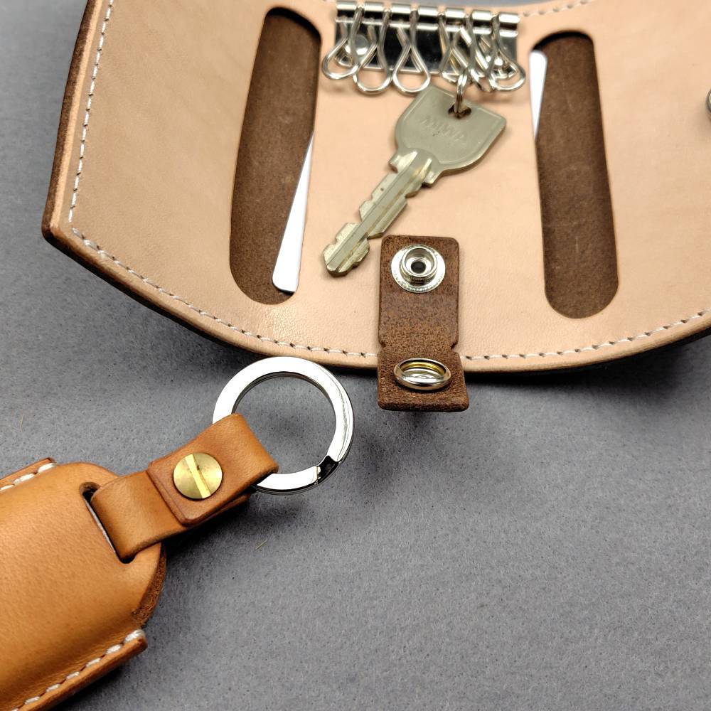 キーリングにぶら下げることも可能で、キーリングはホックで取りつけているため取り外しが可能です。